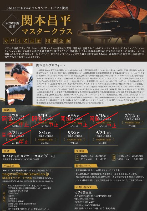 先日こちらのホームページでもご案内した関本昌平先生によるマスタークラスですが、続々とお申し込みが集まって参りました。